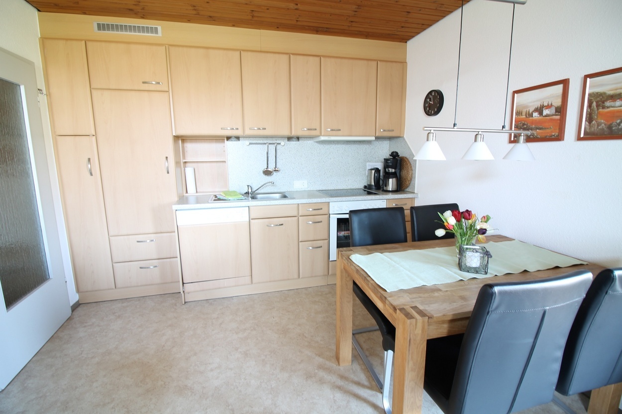 2 Schlaufräume, 1 Hochbett, Dusche/WC, gemütliche Wohnküche, Balkon, Nordseite