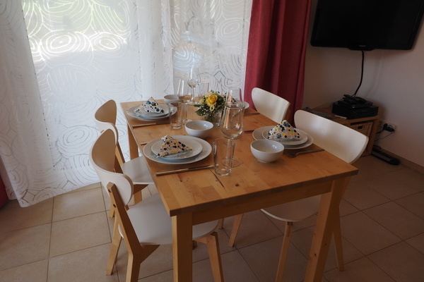 - Wohnzimmer mit Sitzecke, Esstisch, Spielecke (inkl. kleiner Auswahl an Büchern u. Spielen sowie Malsachen), Stereoanlage und CD’s, 2 Flachbild TV (Wohnzimmer, zusätzl. Schlafzimmer ->nur Typ C)