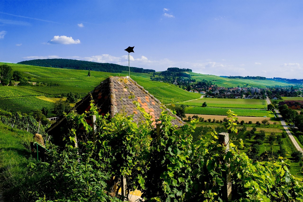 Im Herzen des Markgräflerlandes zwischen Freiburg und Basel liegt das Weindorf und Erholungsort Auggen, umgeben von idyllischer Landschaft.