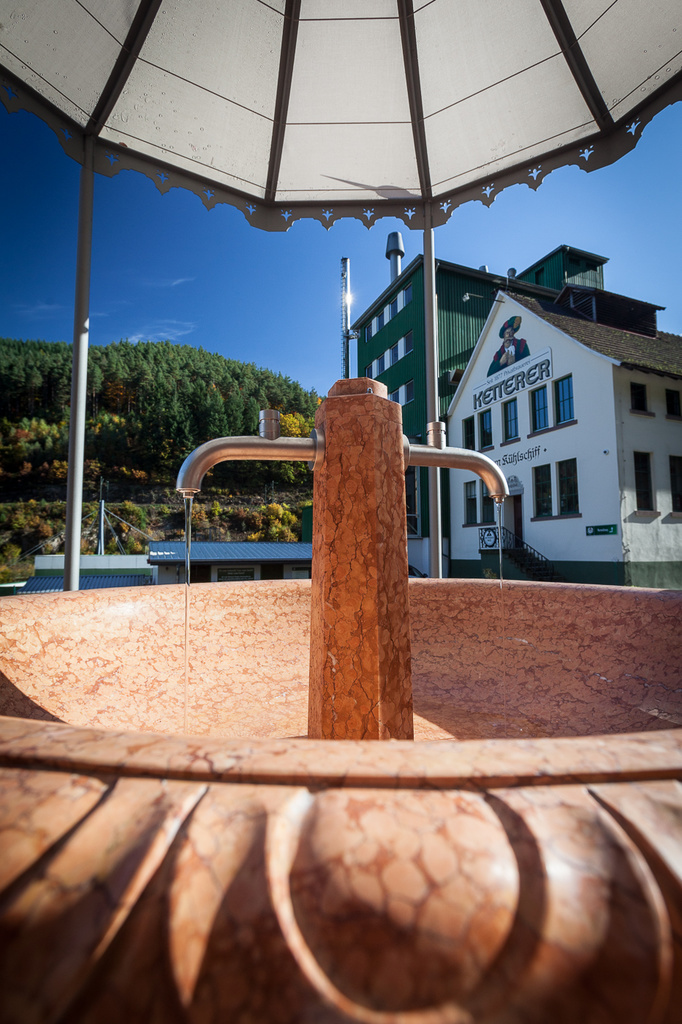 Errichtet wurde der öffentlich zugängliche Trinkbrunnen von der Familienbrauerei Ketterer, zusammen mit einer kleinen Gartenanlage die zum verweilen einlädt. Das an eine kleine Trinkkuranlage erinnernde Areal ist direkt neben dem Familienbetrieb gelegen.