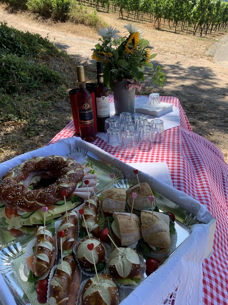 Zusätzlich besteht die Möglichkeit die jeweilige Tour mit einem Outdoor Sektempfang als kleine Überraschung auf der Wanderstrecke oder einem Durbacher Vesperrucksack mit klassischen und vegetarischen Durbacher Spezialitäten zu ergänzen.