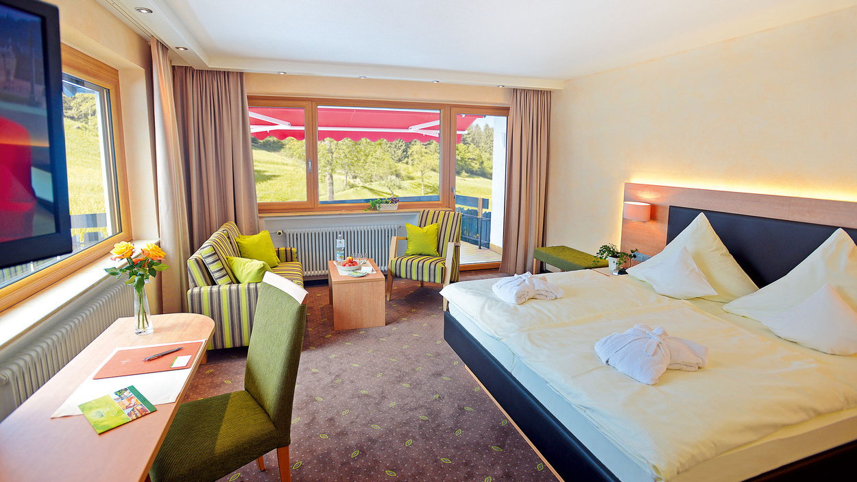 Die Hotelzimmer sind komfortabel ausgestattet und verfügen teilweise über Balkon mit Liegestühlen sowie Kühlschrank. Sie sind mit WC/Dusche, Sat-TV und Durchwahltelefon ausgestattet.