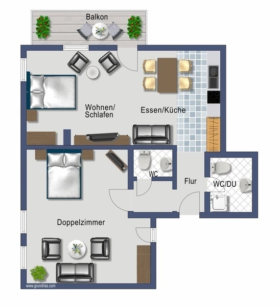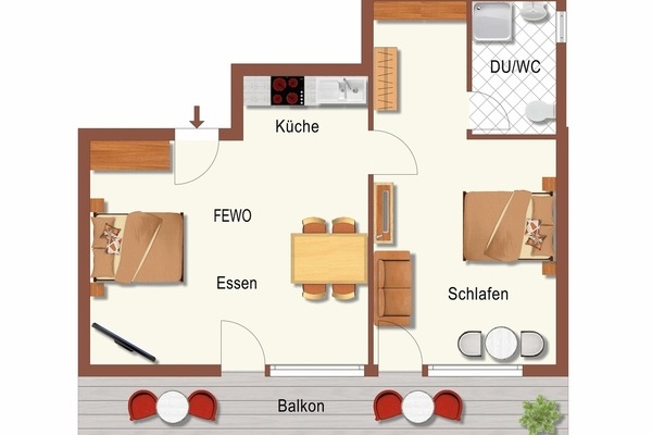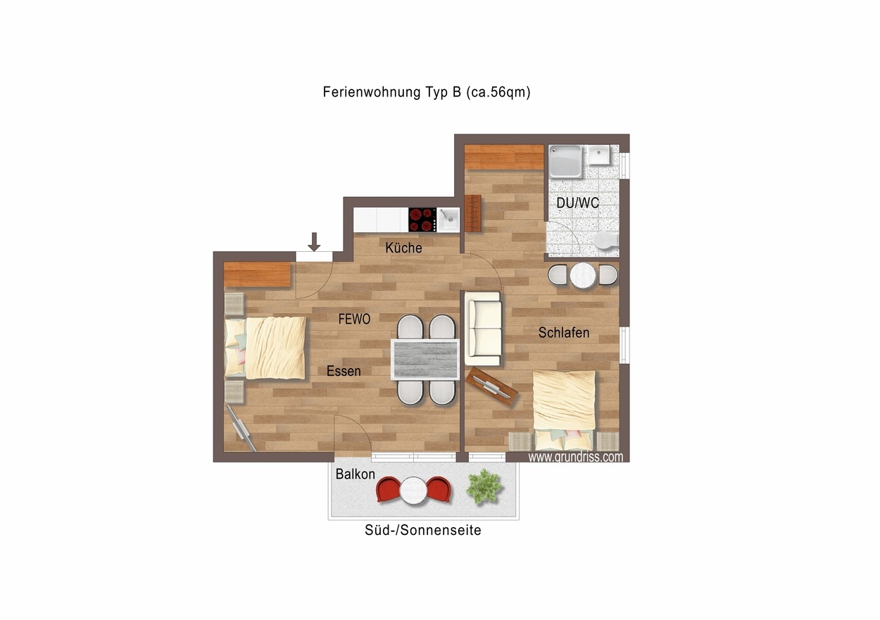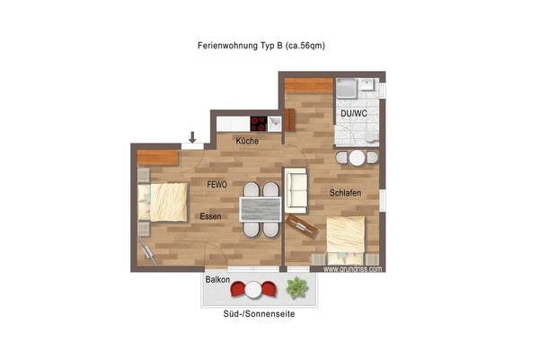 Ferienwohnung Belchen mit Balkon, Typ B (60qm): 2 bis 5 Personen: