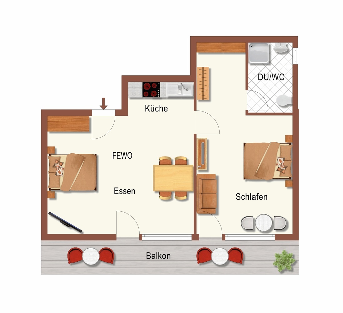 Ferienwohnung Stübenwasen mit Balkon, Typ B (60qm): 2 bis 5 Personen: