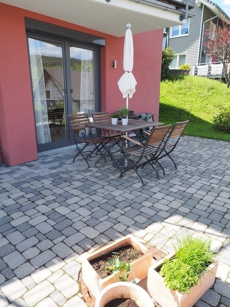 - Grill, Sitzecke, Sonnenliege), ebenerdig (Fußbodenheizung)