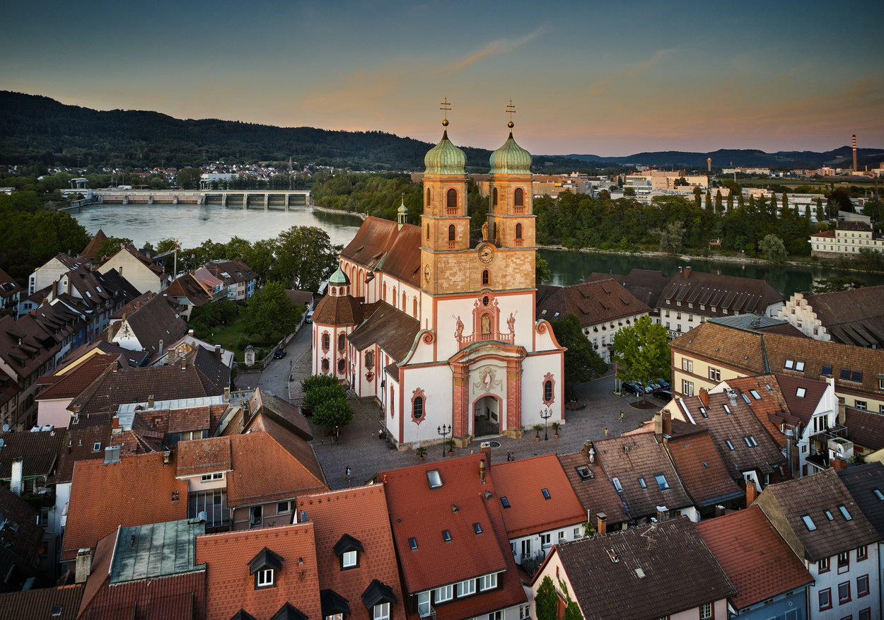 Das Fridolinsmünster in Bad Säckingen wurde im 14. Jahrhundert im romanischen Stil erbaut. Im 17. und 18. Jahrhundert wure die Klosterkirche mit Elementen aus dem Barock erneuert.