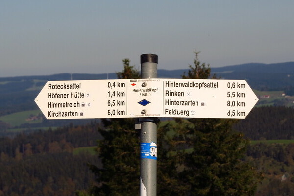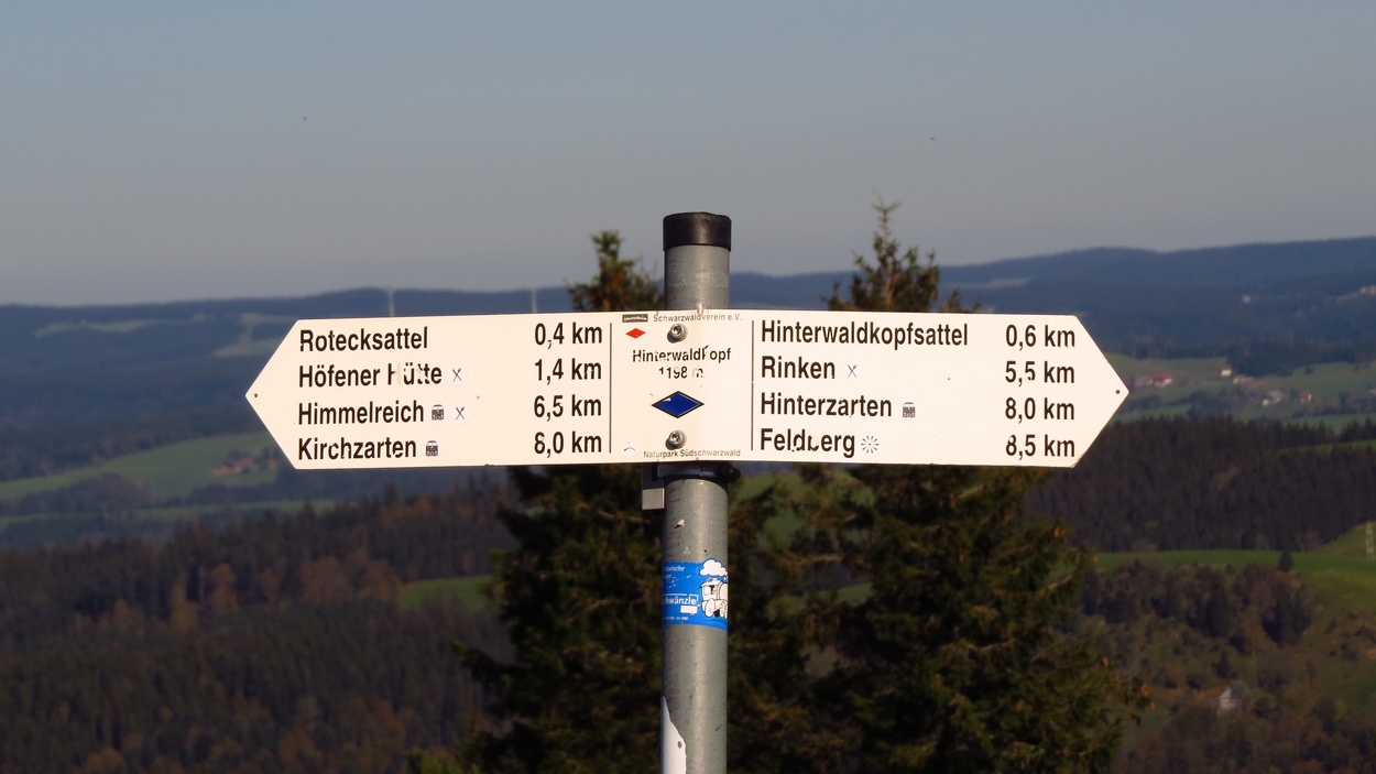 Die nahegelegenen Ortschaften des Schwarzwaldgipfels sind Kirchzarten, Oberried, Falkensteig und Hinterzarten. Die offene Gipfelfläche des Hinterwaldkopfes bietet eine herrliche Aussicht über das Dreisamtal bis hin zum Kandel. Über den Berg hinweg führt ein Wanderweg, der vom Schwarzwaldverein gebaut wurden.