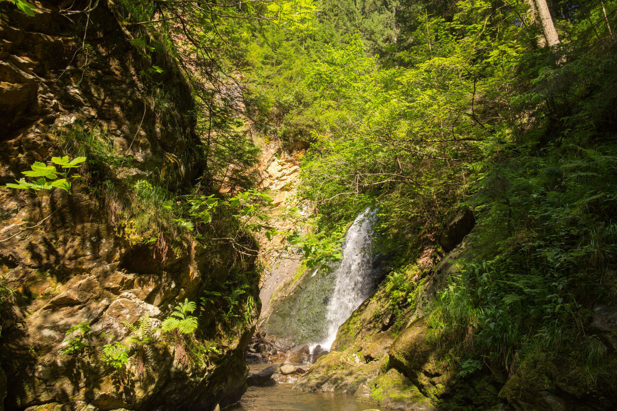 Ein Wanderweg führt Sie entlang steil aufragenden Felswänden, vorbei an wilden Bächen und tosenden Wasserfällen mit bis zu 16 Meter Länge und offenbart beeindruckende und romantische Panoramen.